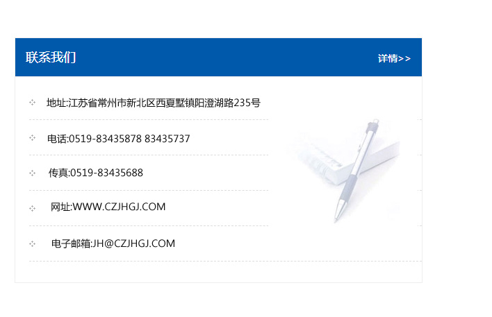 傳真:0519-83435688    郵編:213135    網址:WWW.czjhgj_com.kxfangshui.com    電子郵箱:JH@czjhgj_com.kxfangshui.com